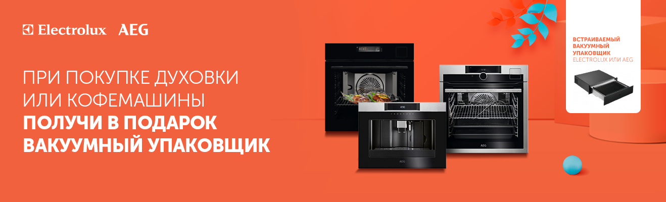 Воспользуйся выигрышным предложением уже сегодня. При покупке духовки или кофемашины от Electrolux, мы дарим тебе вакуумный упаковщик в подарок. Покупать товары для дома и кухни у нас – выгодно!