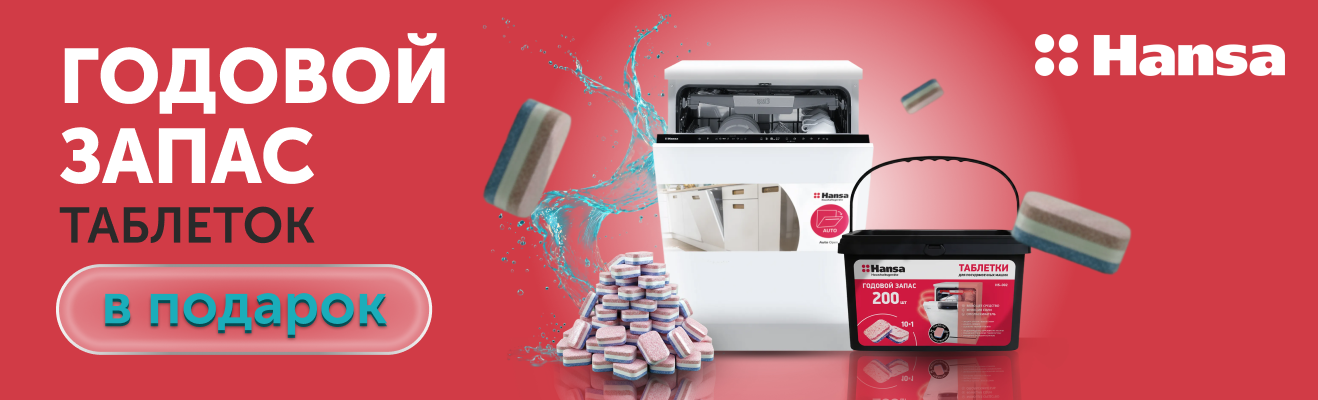 При покупке акционных моделей посудомоечных машин Hansa Вы получаете годовой запас таблеток в подарок.