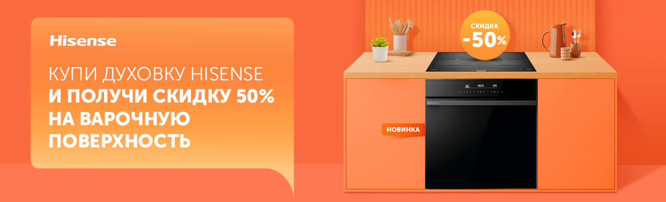 Давно хочешь обновить кухню? Как раз вовремя! Воспользуйся выгодным предложением: купи духовку Hisense, участвующую в акции, и получи скидку 50% на варочную поверхность. Готовь с наслаждением вместе с нами.