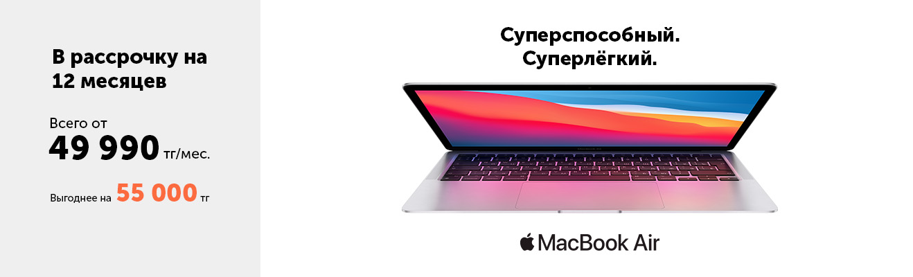 Легкий и производительный MacBook Air с выгодой 55 000 тг всего от 49 999 тг в месяц.