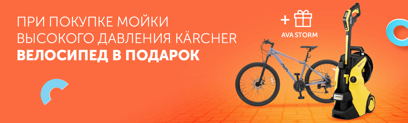 Время покорять чистые дороги! Купи мойку высокого давления Karcher и получи в подарок велосипед AVA STORM. Выгодная акция продлится с 1 по 18 сентября.