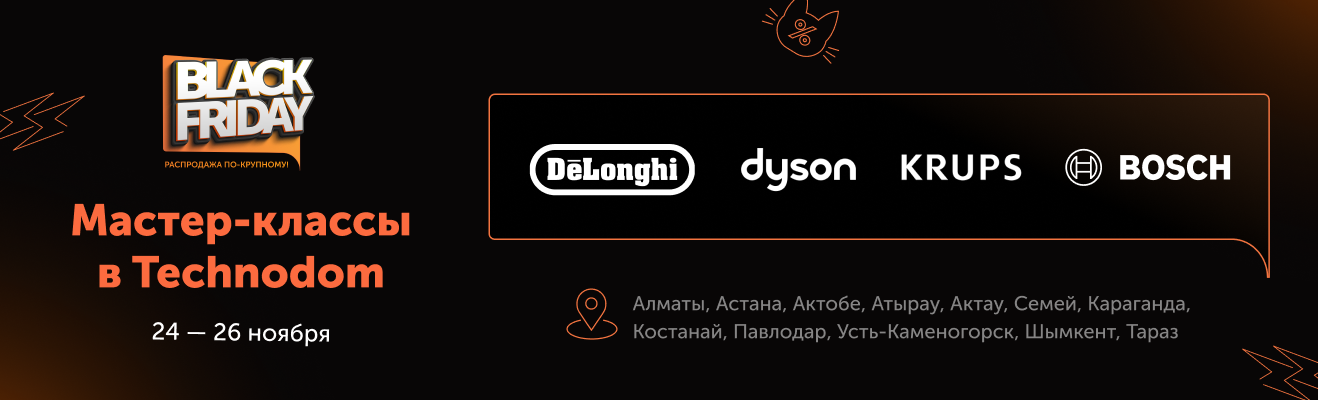 Если да, то с 24 по 26 ноября приходи на наши мастер-классы с ведущими брендами Dyson, Delonghi, Krups и Bosch!