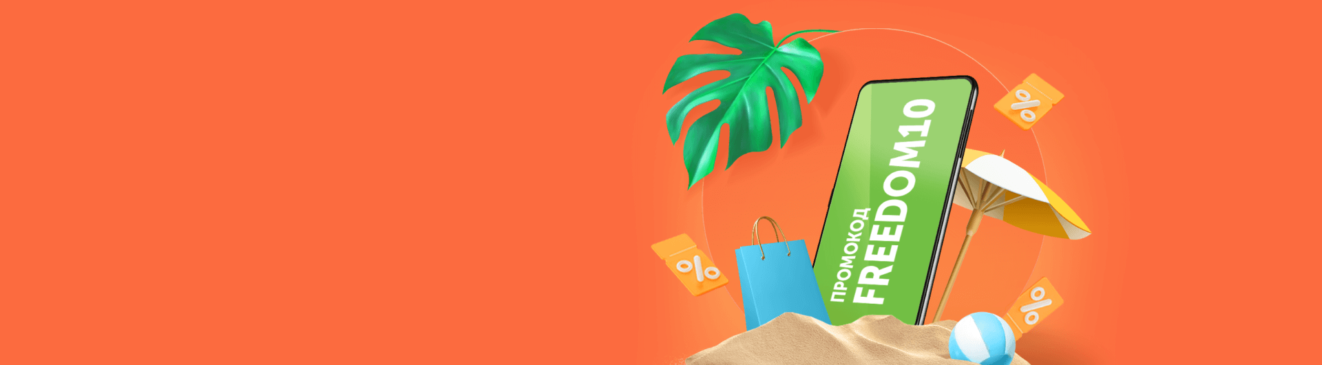 При оформлении заказа введи промокод «FREEDOM10» в поле «Промокод»