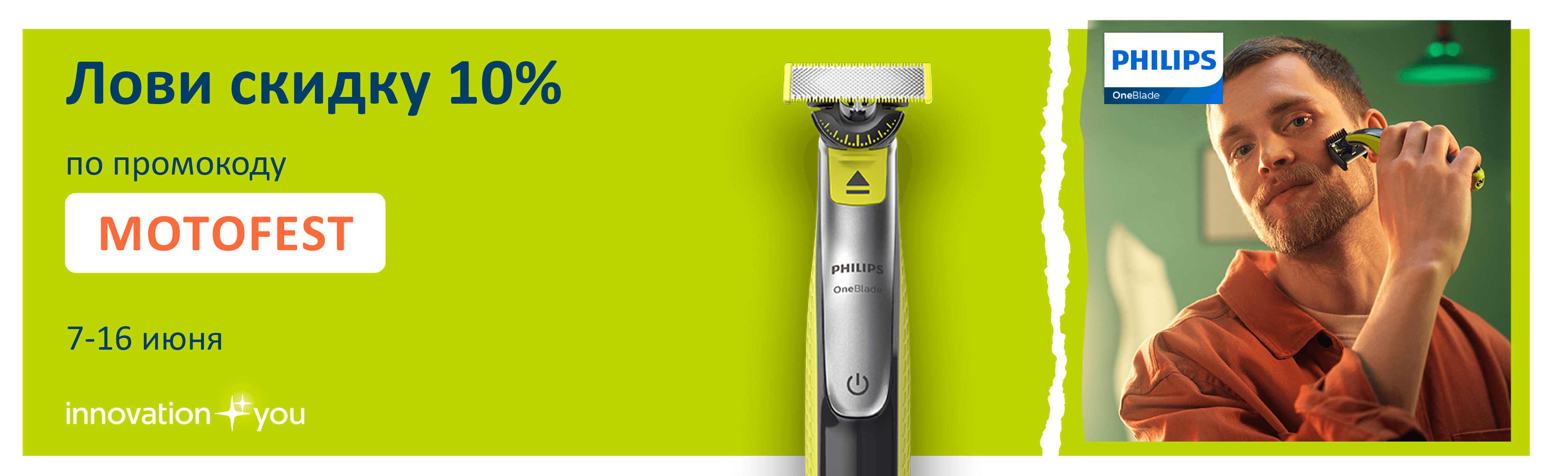 Специально для всех гостей Международного фестиваля «Мотонашествие» с 7 по 16 июня мы дарим скидку -10% на продукцию Philips.