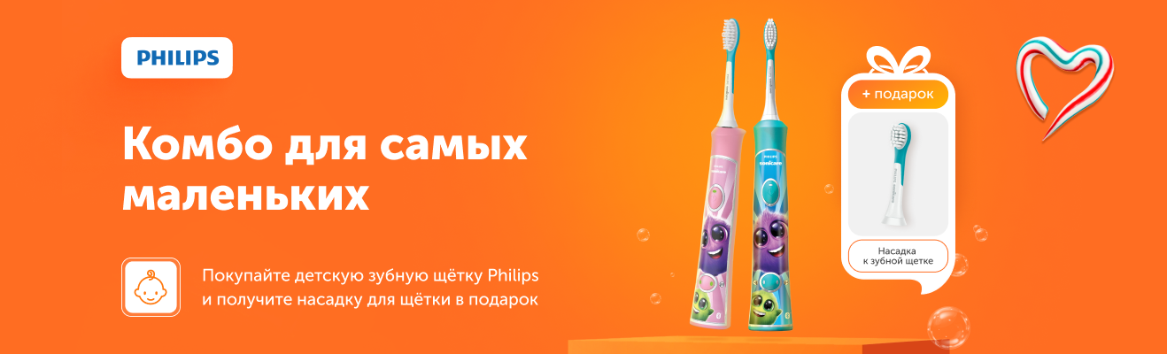 А вместе с нашей акцией вы почувствуете выгоду. Покупайте детскую зубную щётку Philips и получите насадку для щётки в подарок.