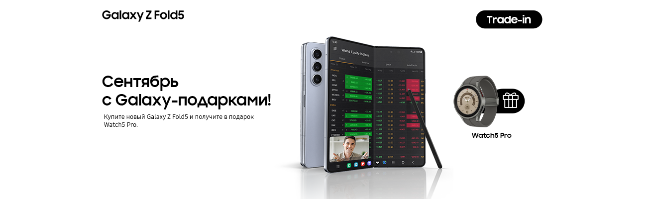 - Купи Galaxy Z Fold5 и получи смарт-часы Watch5 Pro в подарок;