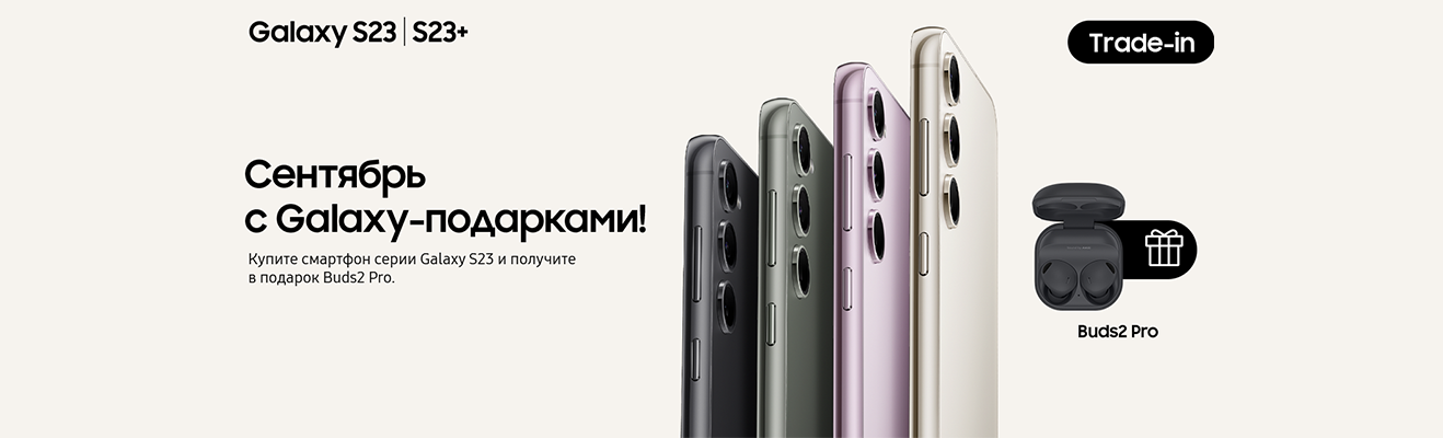 - Купи Galaxy S23 и получи наушники Buds2 Pro в подарок.
