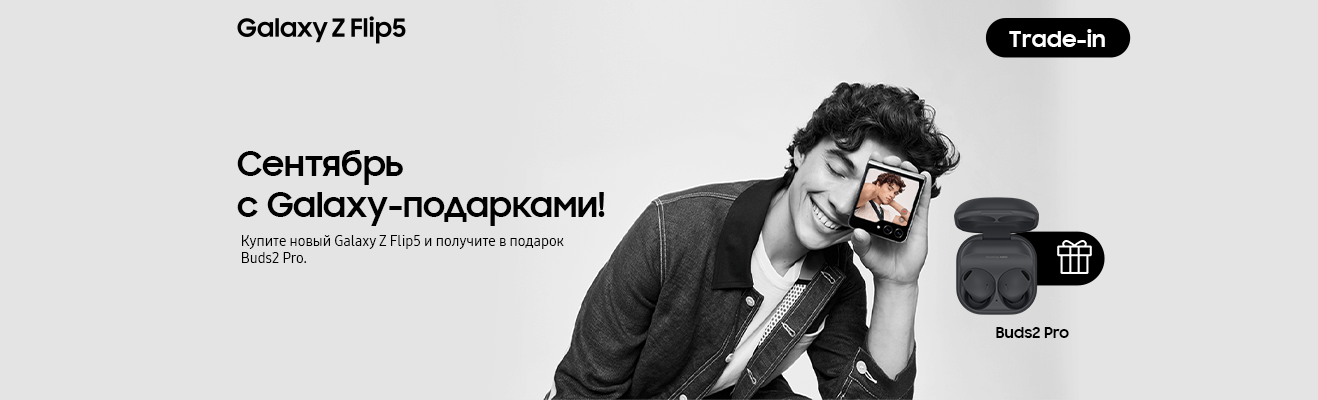 - Купи Galaxy Z Flip5 и получи наушники Buds2 Pro в подарок;