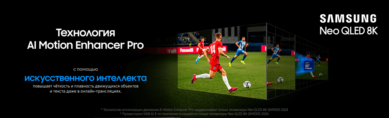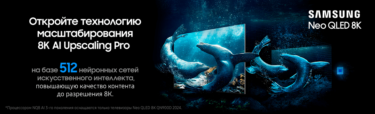 Обеспечь себе качественную и детализированную картинку с Neo QLED 8K. Инновационный процессор NQ8 AI 3-го поколения на базе ИИ, технология 8K AI Upscaling Pro для масштабирования контента до 8K и невероятный дизайн Infinity Air обеспечат тебе максимально реалистичное изображение.