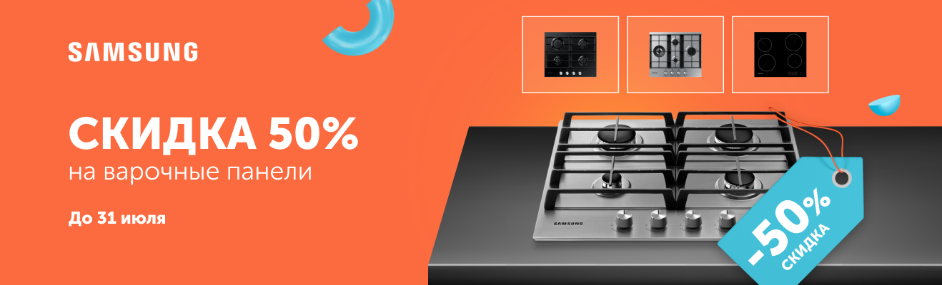 Не пропусти горячую акцию! Покупай варочные панели Samsung со скидкой 50%. Наслаждайся выгодой и новой покупкой до 31 июля включительно.
