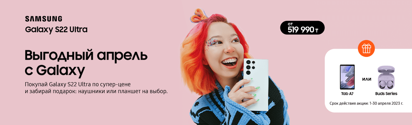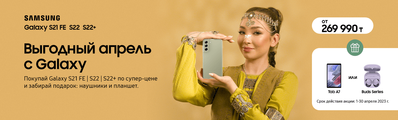 Делаем весенний шопинг ещё приятнее. Купи смартфоны Samsung Galaxy S21 FE, Samsung Galaxy S22 Samsung Galaxy S22+ и получи в подарок беспроводные наушники Galaxy Buds Series или планшет Galaxy Tab 7 на выбор. Есть удобная рассрочка до 24 месяцев.