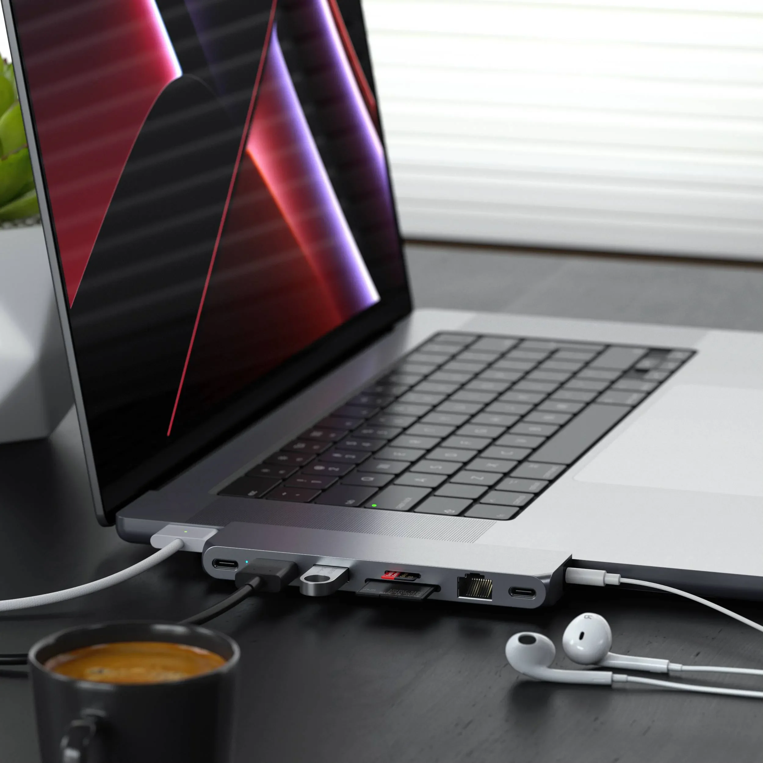Расширяет возможности MacBook Pro 2021 (M1 Pro / Max): USB-C PD, HDMI 4K 60 Гц, Gigabit Ethernet, USB-C/USB-A, microSD/SD и аудиоразъём.