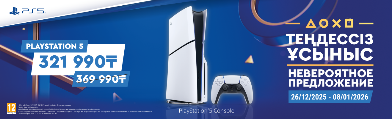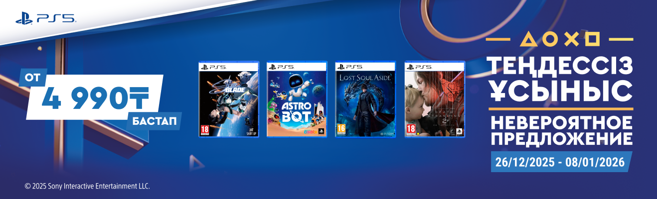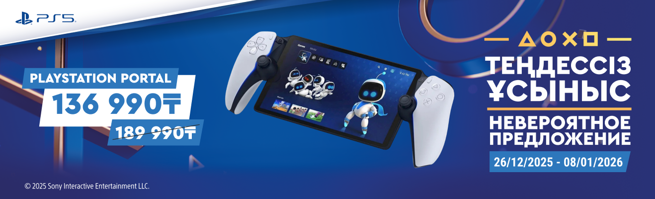 С 26 декабря 2025 по 8 января 2026 года вас ждут захватывающие скидки на лучшие товары PlayStation! Популярные игры для PS5 — от 4 990₸, портативная консоль PlayStation Portal — за 136 990₸ вместо 189 990₸, а сам PlayStation 5 —по специальной цене 321 990₸.