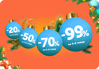 Покупай праздничные подарки близким выгодно и легко с 20% скидкой на второй товар, 50% на третий, 70% на четвёртый и 99% на пятый. Стань лучшим Тайным Сантой в своём кругу!