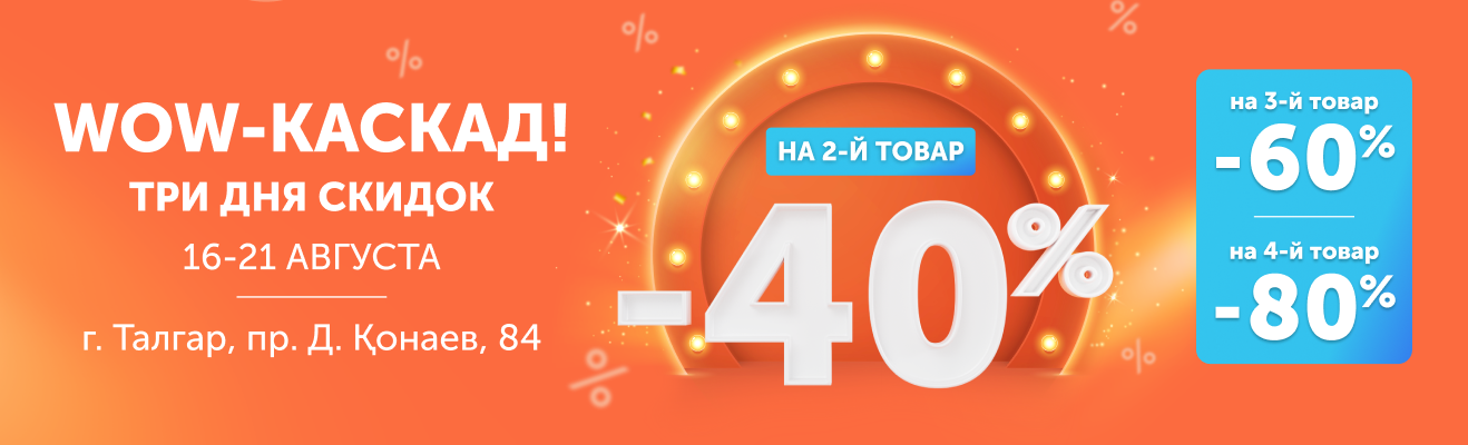 Хочешь получить 40% скидку уже на второй товар, 60% на третий и аж 80% на четвёртый? Воспользуйся Каскадными Скидками от Technodom и стань обладателем новой техники выгодно.