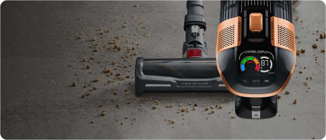 Справится даже с самым мелким мусором для безупречной чистоты на твердых и ковровых напольных покрытиях.