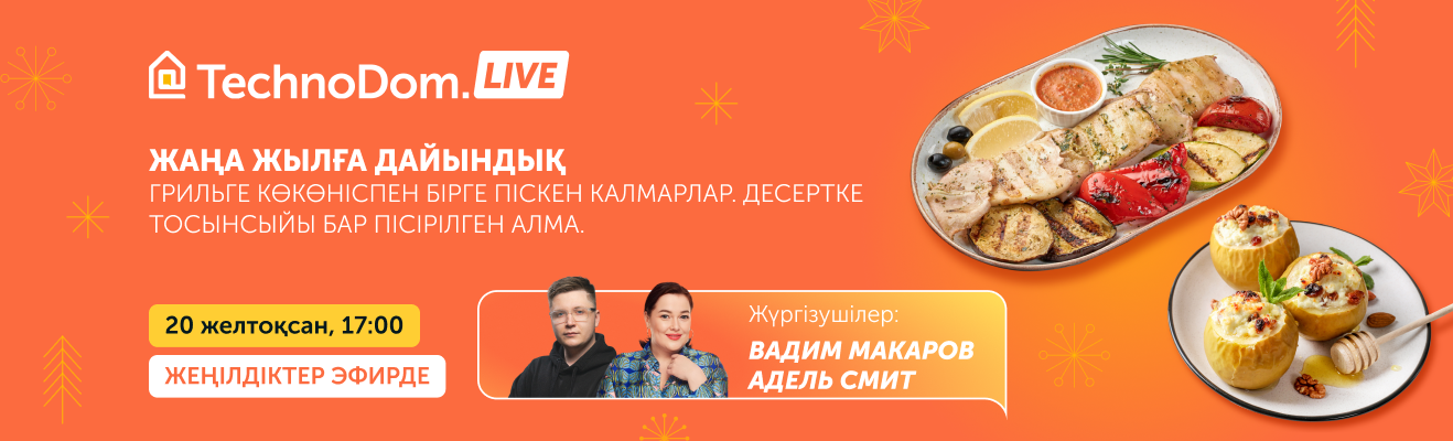 Technodom қосымшасынан Tefal optigrill+ XL грилінде кальмарды көкөніспен қалай жасау керегін және ішінде тосынсыйы бар пісірілген алма дегеніміз не екенін білесің. Кел де, көр. Естен кетпес күн болады. Сонымен қатар эфирімізде тауарларға жеңілдік беретінімізді ұмытпа. Өтетін күні: 20 желтоқсан, 17: 00. Бізбен бірге бол, Жаңа жылды керемет тағамдар пісіріп, бірге қарсы алайық.