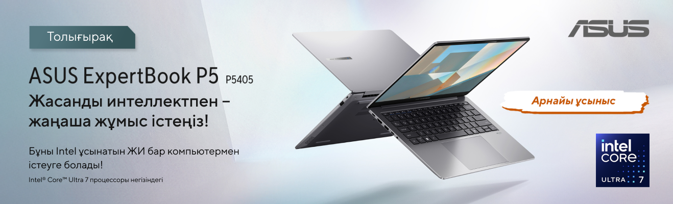 Бұл ноутбук жасанды интеллектпен жабдықталған, сондықтан жұмыс өнімділігіңізді арттырады. ASUS ExpertBook P5 — өнімділік пен функционалдылықты бағалайтындарға арналған қуатты шешім. Ол Intel Core Ultra 7 процессорымен жабдықталған, бұл жұмыс жылдамдығын арттырып, күрделі тапсырмаларды орындауға көмектеседі.