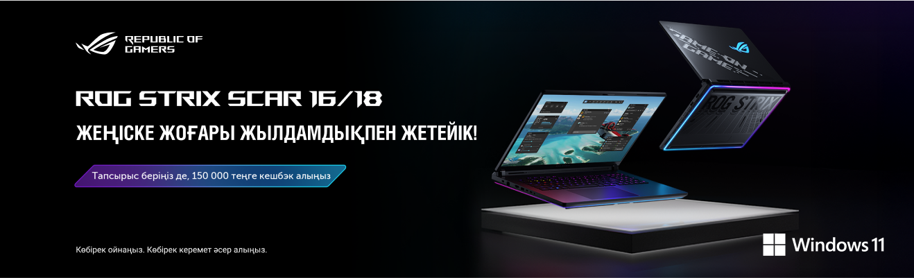 Asus ROG Strix SCAR 18/16-ға алдын ала тапсырыс беріңіз де, 150 000 ₸ кешбэк алыңыз