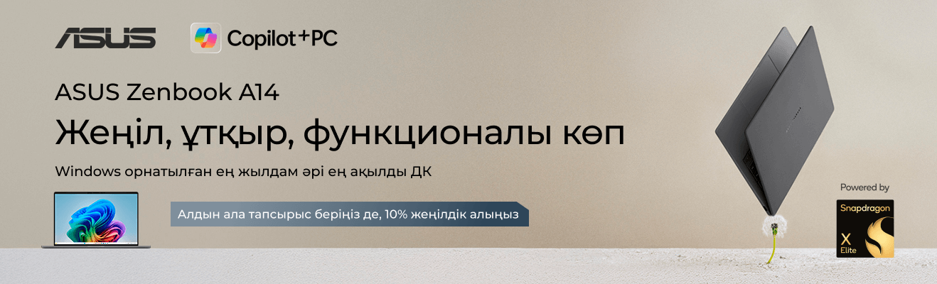 9 ақпанға дейін ASUS Zenbook A14-ке алдын ала тапсырыс беріп, 10% жеңілдік алыңыз.