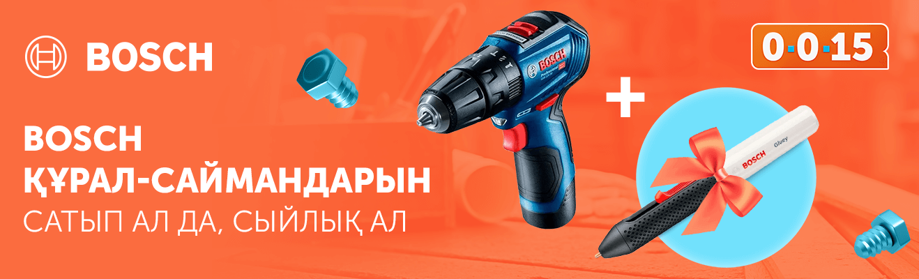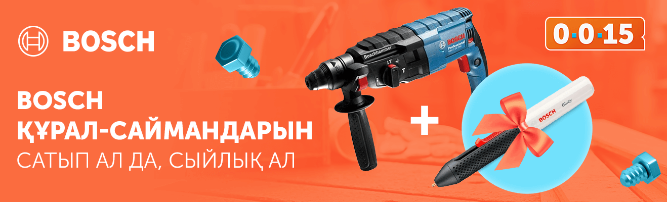 Үйде немесе саяжайда жөндеу жұмысын жүргізгің келе ме? Қажетті құрал-саймандарды тиімді сатып ал! Акцияға қатысатын Bosch құрал-саймандарын сатып алсаң, аккумуляторлы желім пистолеті сыйлыққа беріледі.