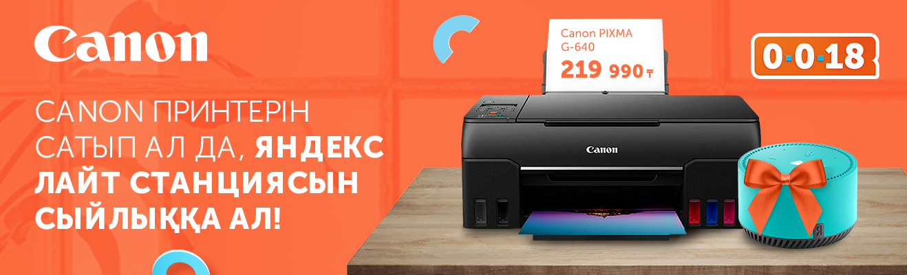 Бізбен бірге өміріңді жеңілдет: 11-28 мамыр аралығында Technodom-нан Canon принтерін сатып ал да, Яндекс Лайт станциясын сыйлыққа ал! Өз құжаттарыңды тек сапалы басып шығаруға тапсырып, Алиса дыбыстық көмекшісімен нағыз жайлылықты сезін.