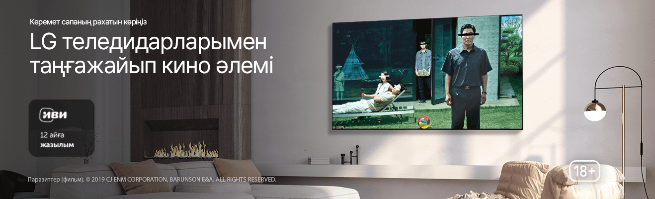 LG теледидарын сатып алған жағдайда, «Иви» онлайн-кинотеатрына 12 айға жазылым сыйлыққа беріледі! Мыңдаған фильмдерді, телехикаялар мен мультфильмдерді көру үшін кинотеатрға барудың қажеті жоқ.