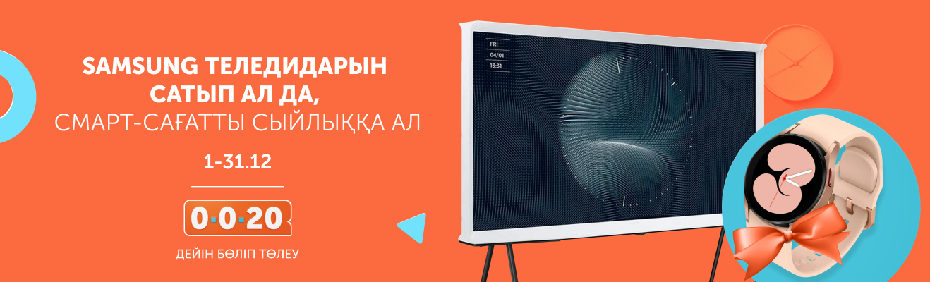 Үлкен экранды сүйетін жандарға сыйлықтар тарту етеміз! Lifestyle сериялы Samsung теледидарларын сатып ал да, кең функционалды сәнді Galaxy Watch4 Aluminium смарт-сағатын сыйлыққа ал.