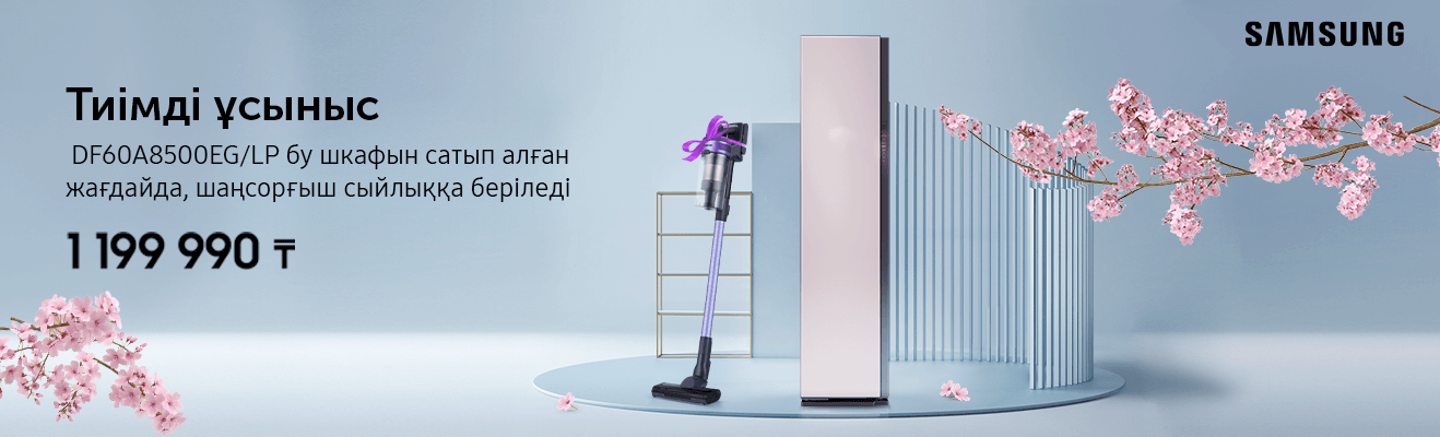 Үй шаруасын жаңа деңгейдегі техникаға тапсыр. Акцияға қатысатын сәнді Samsung бу шкафын сатып ал да, тік шаңсорғышты сыйлыққа ал. Пайдаңды екі еселеп, 24 айға дейін бөліп төлеуге сатып ал.
