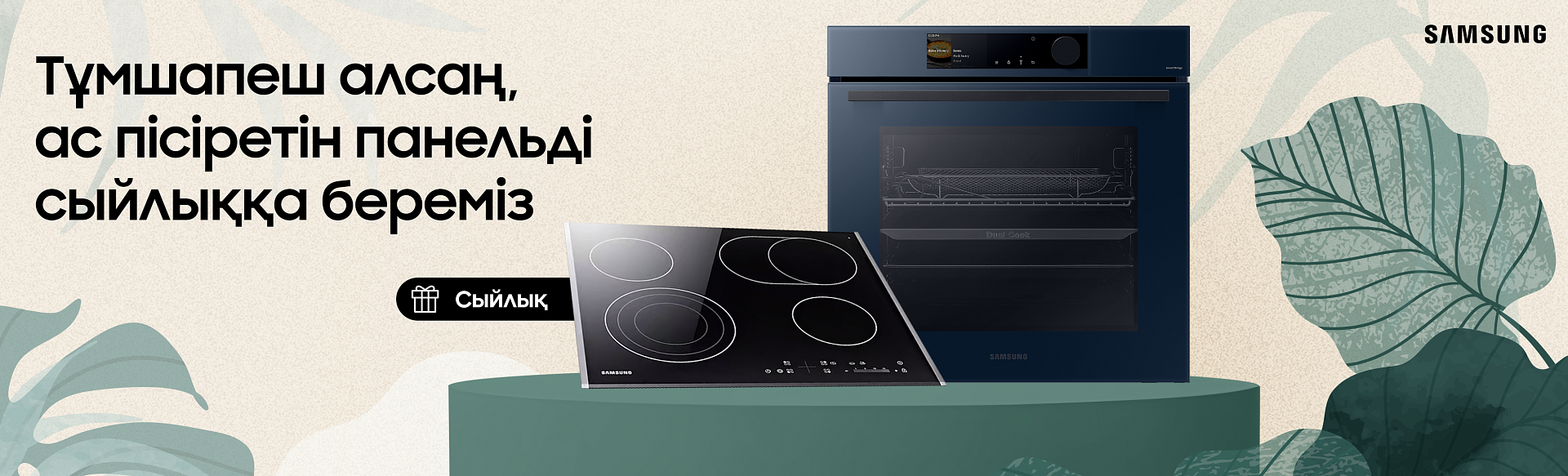 Сенің асүйіңе арналған тиімді шешім таптық. Бір уақытта Samsung тұмшапешінде тамақ бұқтырып, екінші тамақты Samsung ас пісіретін панелінде пісір. Samsung тұмшапешін алсаң, ас пісіретін панелін сыйлыққа береміз