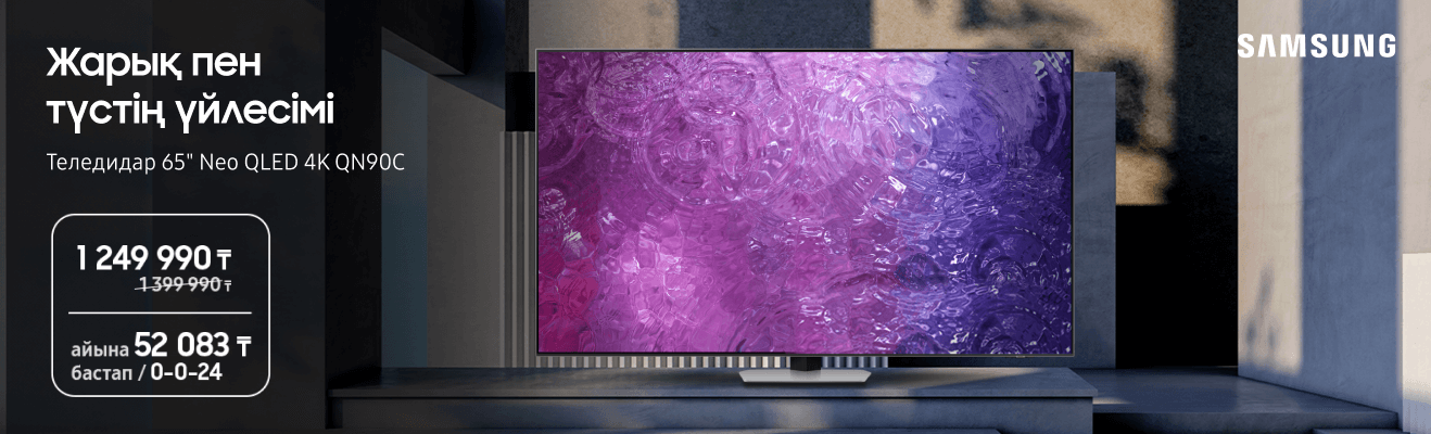 • Samsung Neo QLED QN90C теледидары айына небәрі 52 083 теңгеден;