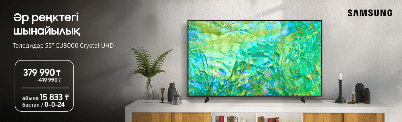 • Samsung Crystal UHD CU8000 теледидары айына небәрі 16 875 теңгеден;