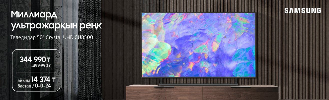 • Samsung Crystal UHD CU8500 теледидары айына небәрі 14 971 теңгеден;
