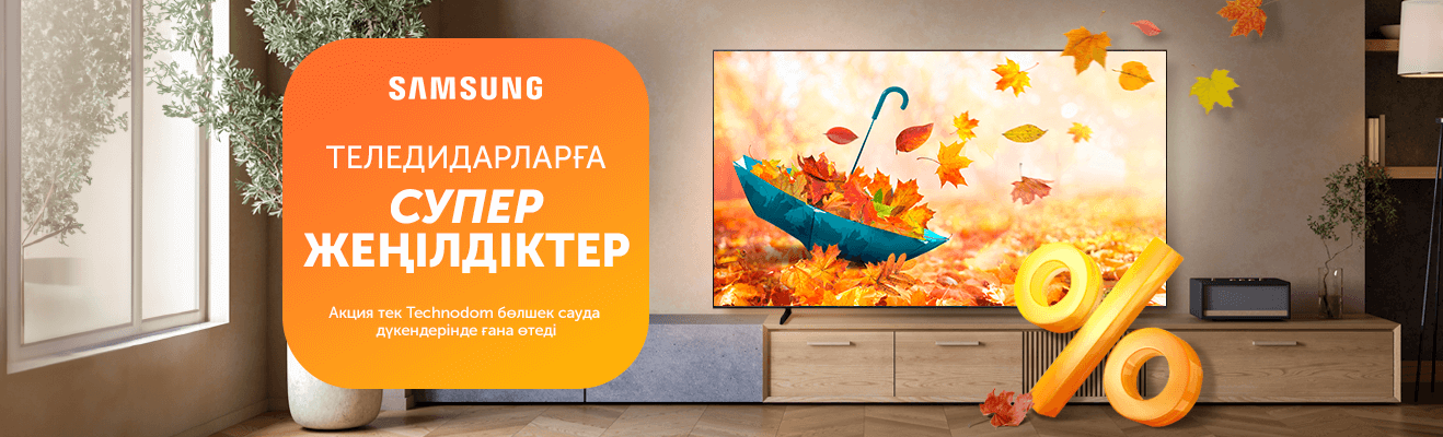 Теледидарыңды жаңартып, Samsung-пен бірге ең сапалы фильмдерді тамашала! Жеңілдік жарияланған тауарларды тек Technodom бөлшек сауда дүкендерінен ғана ала аласың, кел де, тиімді екеніне өзің көз жеткіз.