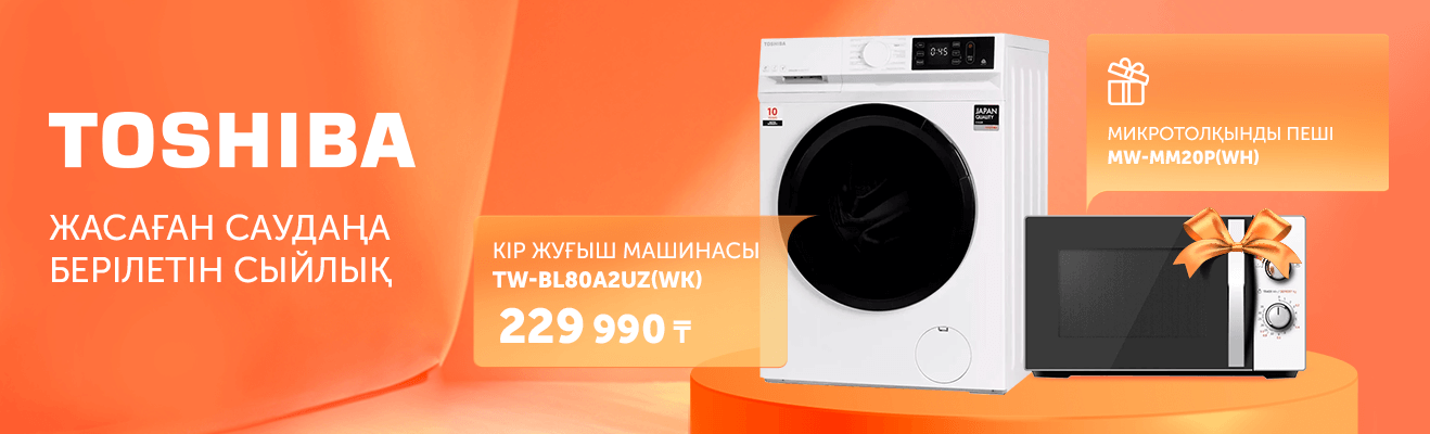 Сауда жасағаның үшін сыйлық береміз! Акцияға қатысатын Toshiba кір жуғыш машинасын алсаң, сыйлыққа микротолқынды пеш береміз. 17-30 қараша аралығында өтетін дәмді акцияны пайдалан да, тиімді бағамаен үйіңді жайлы мекенге айналдыр.