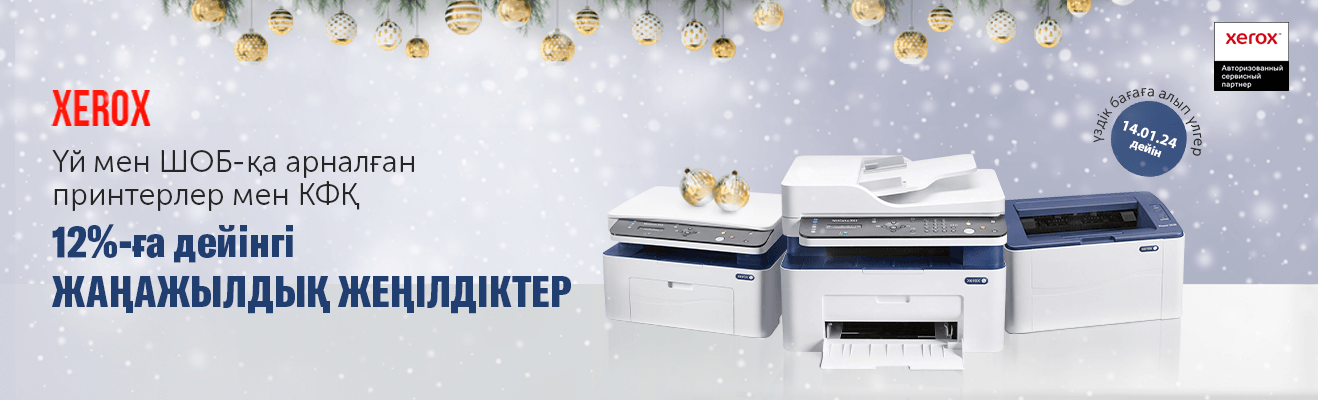 Құжат тіпті мереке күні де қажет болып қалуы мүмкін. Сондықтан Xerox үйге және ШОБ-қа арналған принтерлер мен КФҚ құрылғыларына 12%-ға дейін жеңілдік ұсынады. 2024 жылдың 14 қаңтарына дейін жаңажылдық сауда жасап, ғажайып жеңілдіктерге ие бол.
