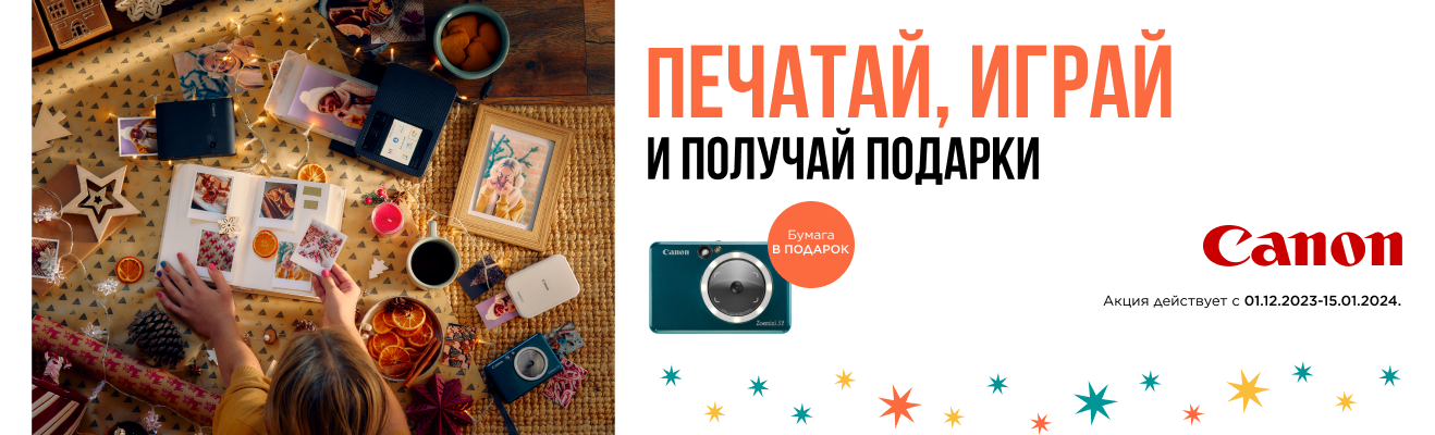 Желтоқсан – сыйлық алатын және беретін уақыт. Technodom дүкендерінен Zoemni S2 мен Zoemini 2 цифрлық аппараттарын ал да, сыйлыққа Canon Zink фотоқағазының 20 данасын ал. Мерекедегі естен кетпес сәттерді түсір, басып шығар, альбомыңды толтыр. 15 айға дейін бөліп төлеу бар.