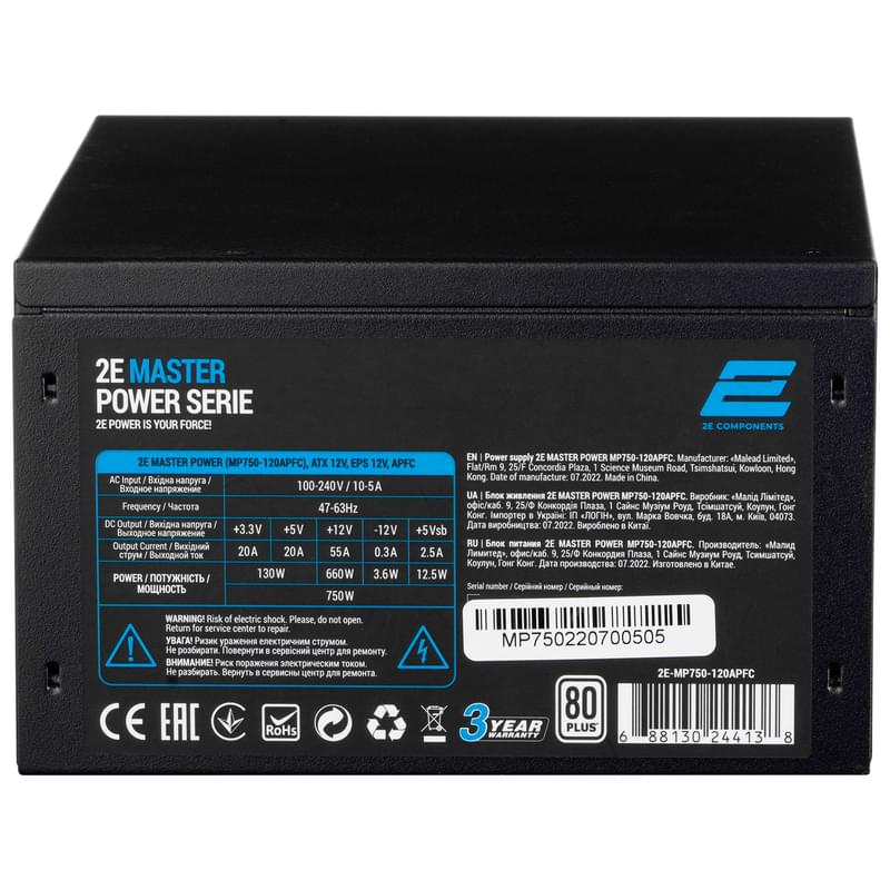 Блок питания 750W 2E GAMING MASTER POWER FM ATX 80+ WHITE 20+4pin, 4+4pin (2E-MP750-120APFC)
