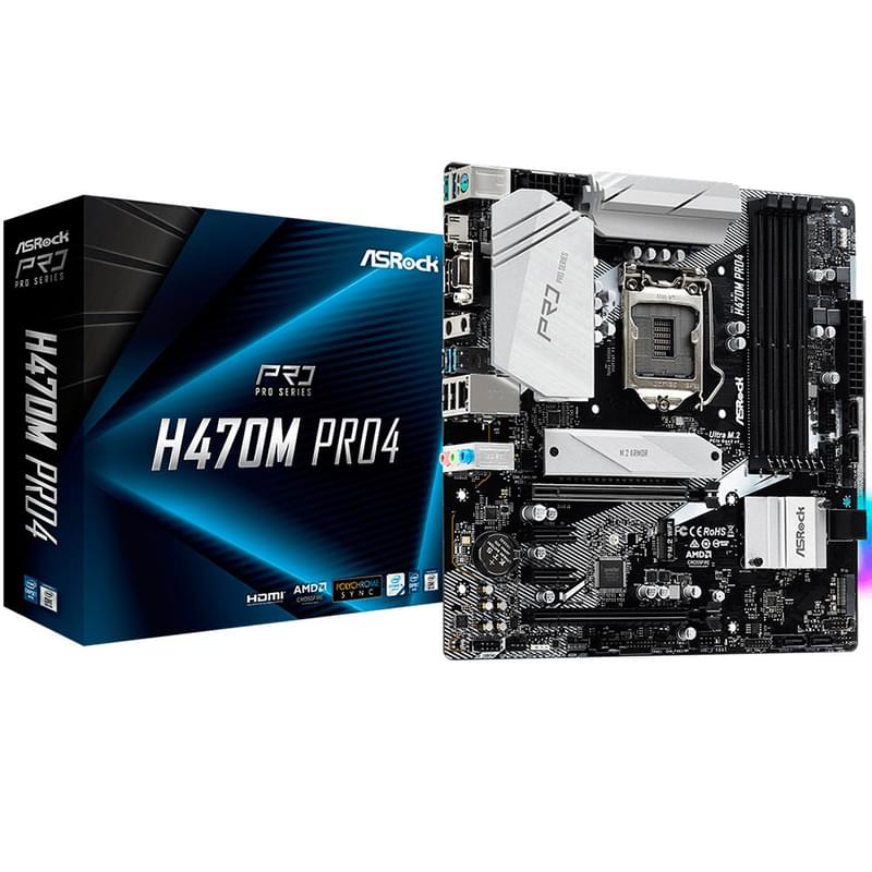 Материнская плата ASRock H470M Pro4 LGA1200 4DDR4 PCI-E 2x16 2x1 (HDMI+DP+D-Sub) mATX