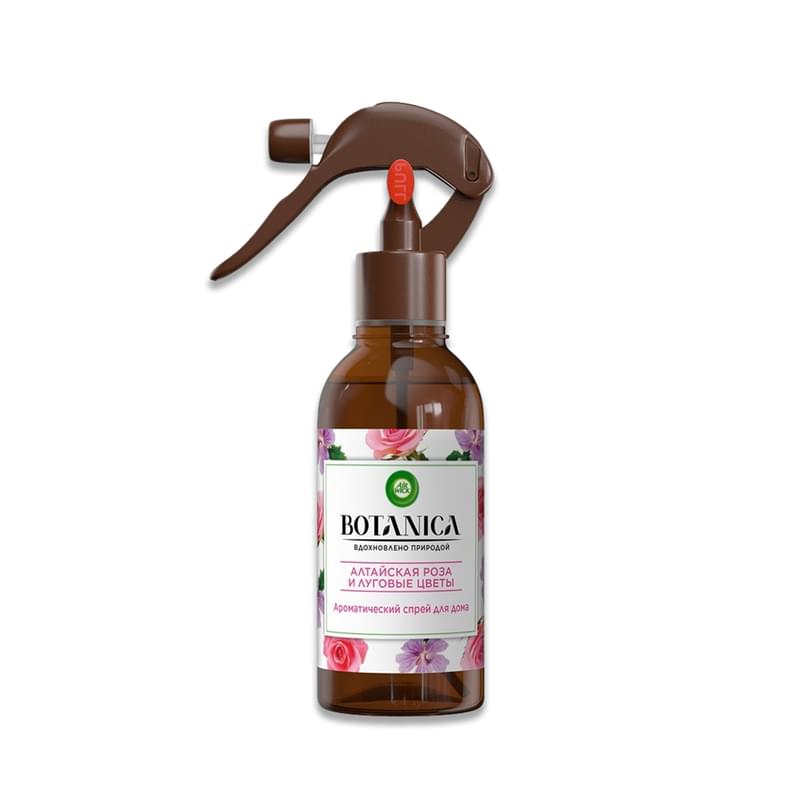 Освежитель воздуха Air Wick Botanica Spray с натуральным ароматом алтайской розы и луговых цветов наполняет помещение приятным цветочным запахом, нейтрализуя остальные неприятные запахи.