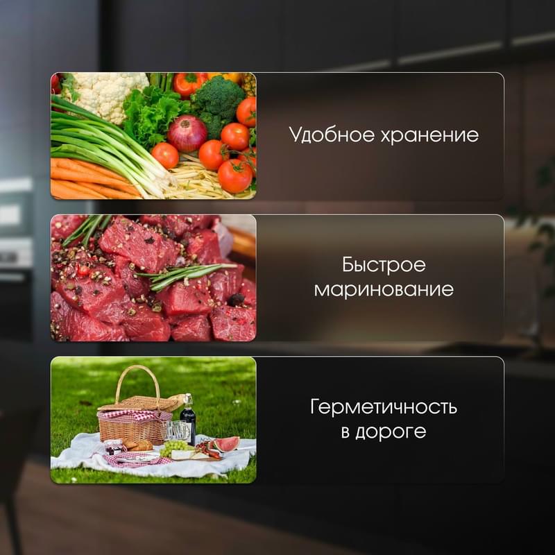 Для вакуумирования, Для сохранения свежести и полезных свойств продуктов, Для подготовки к приготовлению по технологии Sous-Vide