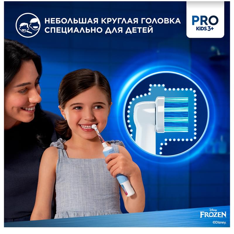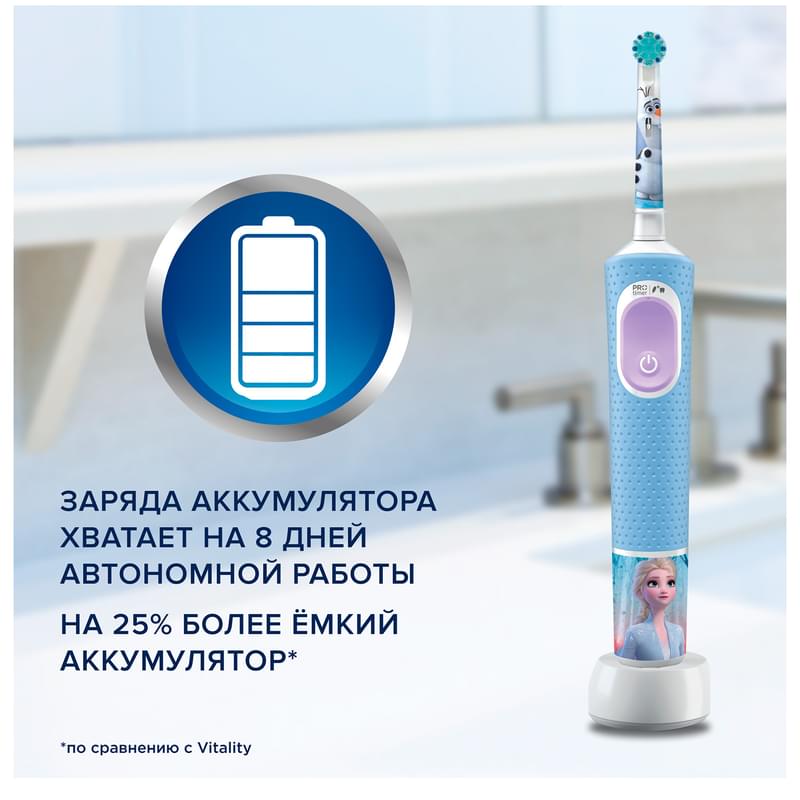 Детская электрическая зубная щетка Oral-B Vitality Pro Kids "Холодное Сердце 2" с мобильным приложением, круглая насадка, 3+ лет