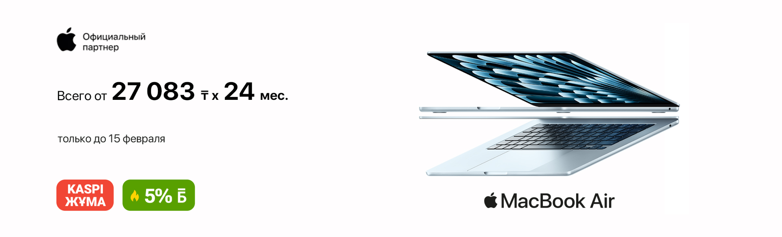 В акции участвуют iPhone, iPad, AirPods и MacBook. Покупку можно оформить в рассрочку до 24 месяцев или воспользоваться trade-in, снизив стоимость нового устройства. В зависимости от модели выгода может достигать до 91 000 ₸.