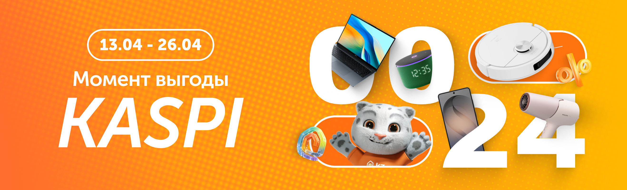 С 13 по 26 апреля воспользуйтесь акцией Kaspi 0-0-24 — оформляйте рассрочку на 24 месяца и забирайте технику уже сегодня.