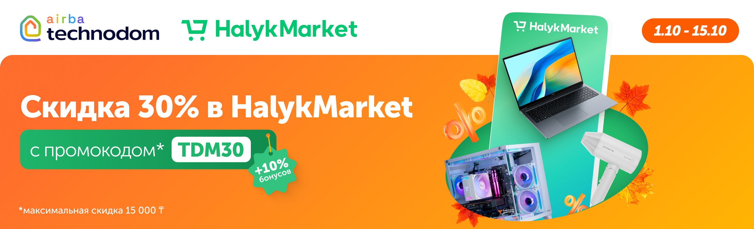 Halyk Market с промокодом TDM30 и получите скидку 30%.