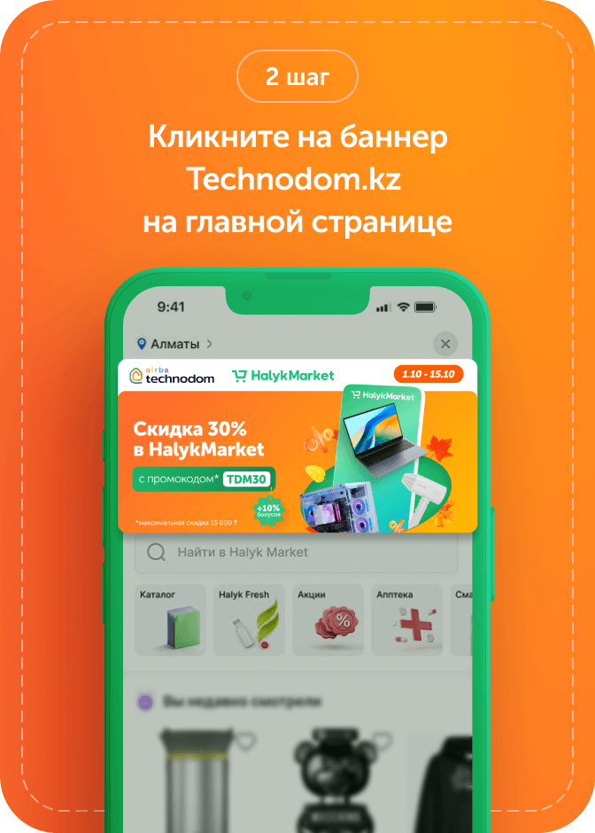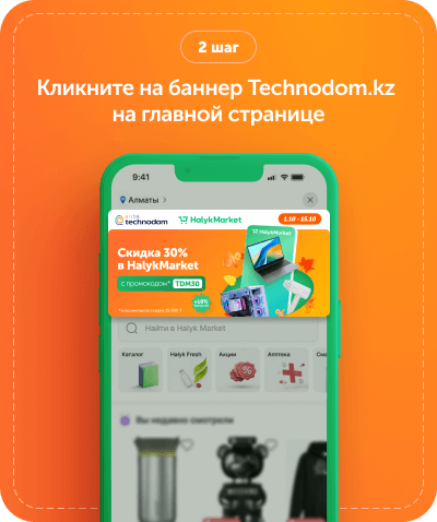 - Промокод действует только на товары TechnoDom.kz в Halyk Market;