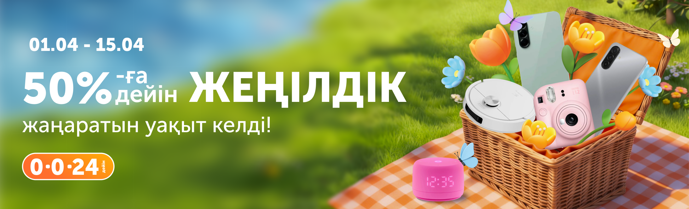 2026 жылғы 1 сәуірден 15 сәуірге дейін — үйіңізді жайлырақ, жұмысыңызды өнімдірек, ал демалысты жарқын ететін техникаға арнайы баға береміз. Бұрыннан кейінге қалдырып жүрген техникаңызды дәл қазір алып алатын уақыт келді.