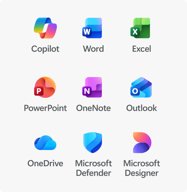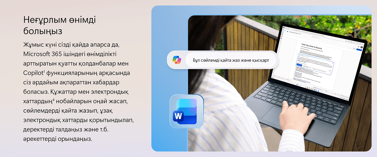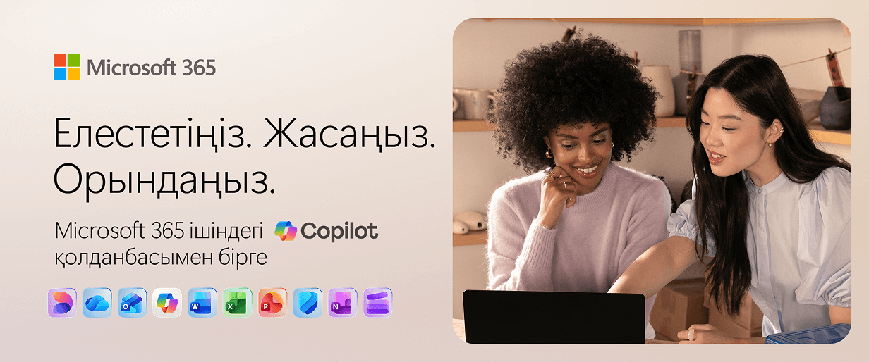 Бір жазылым аясында жаңа жетістіктерге жетіңіз. Қуатты қолданбалар, инновациялық ЖИ1, цифрлық қауіпсіздік және үлкен бұлттық жад — Microsoft 365 арқылы барлығы бір жоспарда.