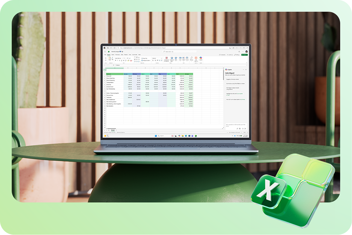 Copilot2 формулаларды ұсынып, диаграммалар жасап, деректеріңіздің тарихын көруге көмектеседі.