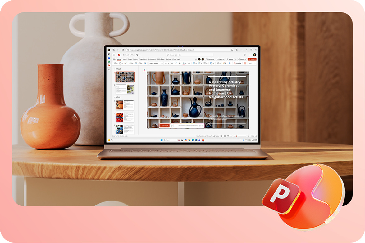Қарапайым сұрау жасап PowerPoint қолданбасындағы Copilot қызметі арқылы слайдтар, көрнекі әсерлер жасауға және тіпті сөйлеушінің жазбаларын қосуға болады.